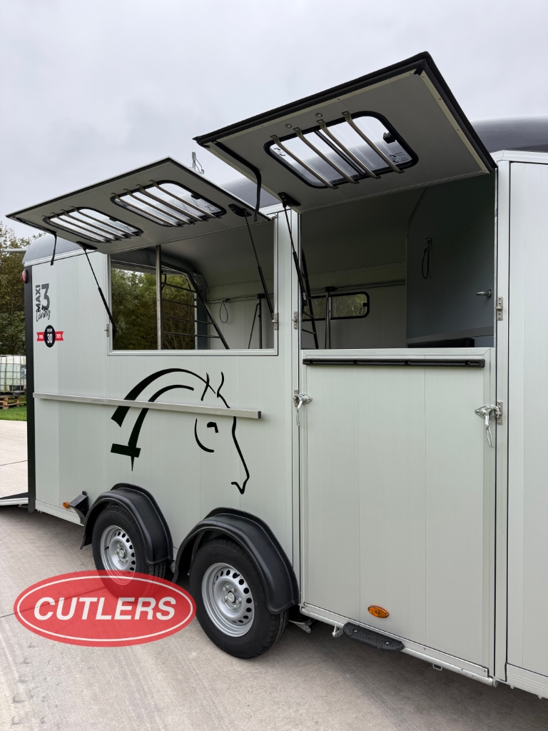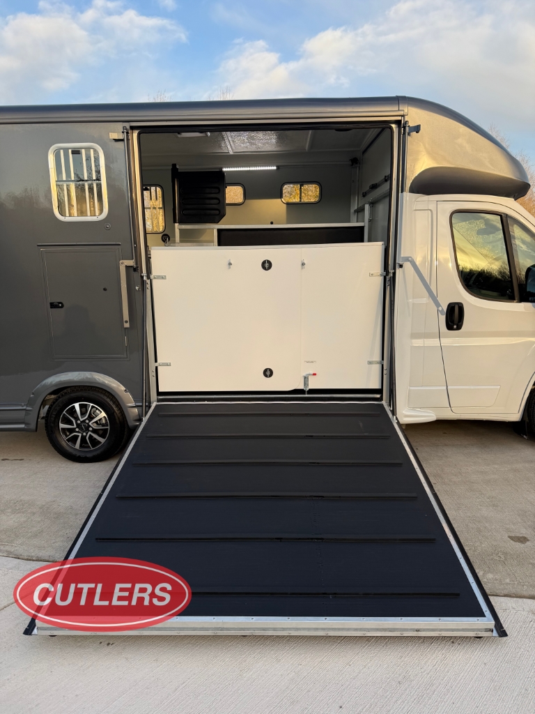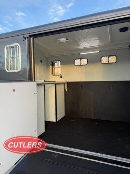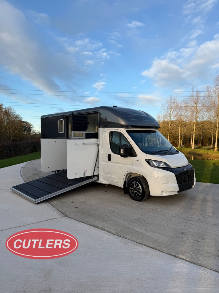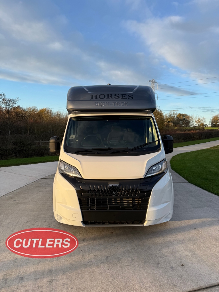 Now available at Cutlers Sales & Hire Ltd – Equi-Trek Derby, this brand new, unregistered Equi-Trek Sonic Excel 3.5 Ton horsebox offers premium comfort, safety, and performance. Built on a Peugeot chassis with a powerful 2.2L diesel engine producing 140BHP, this horsebox is ideal for transporting horses up to 18.0hh with ease.
