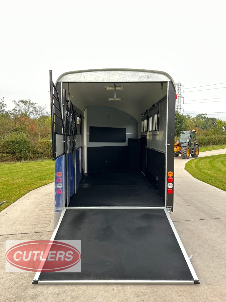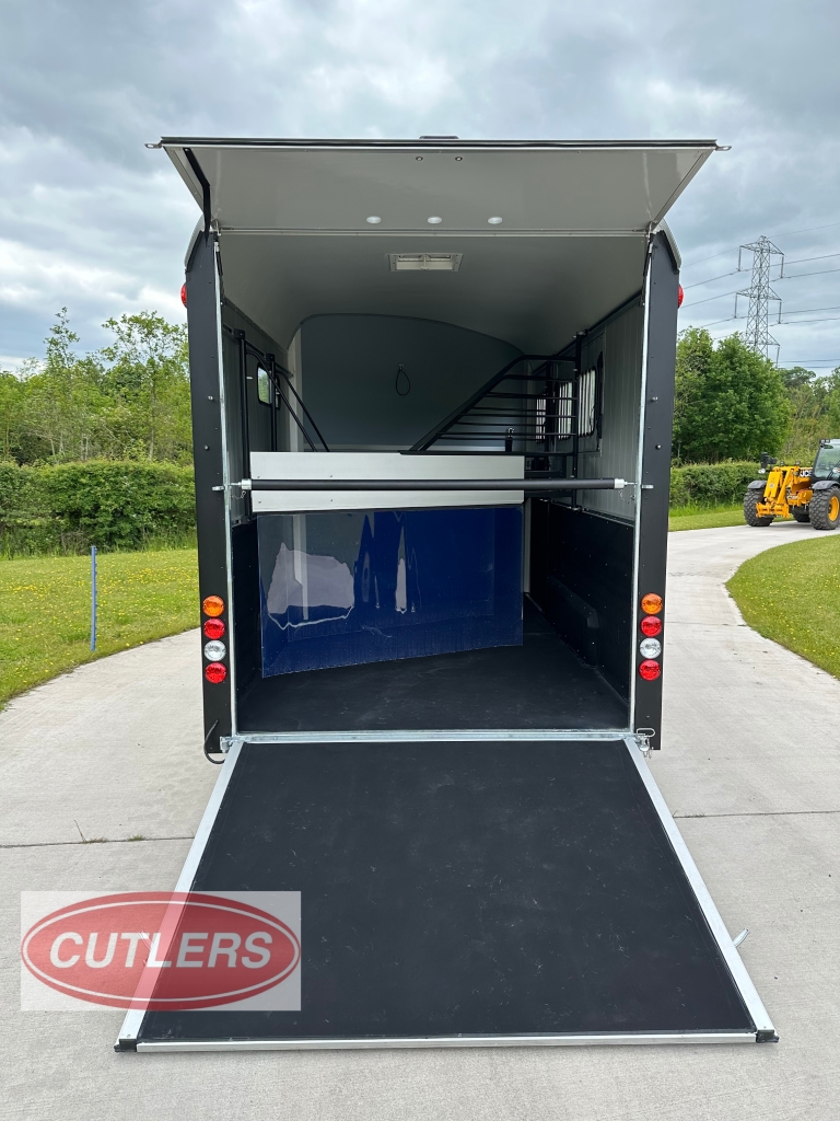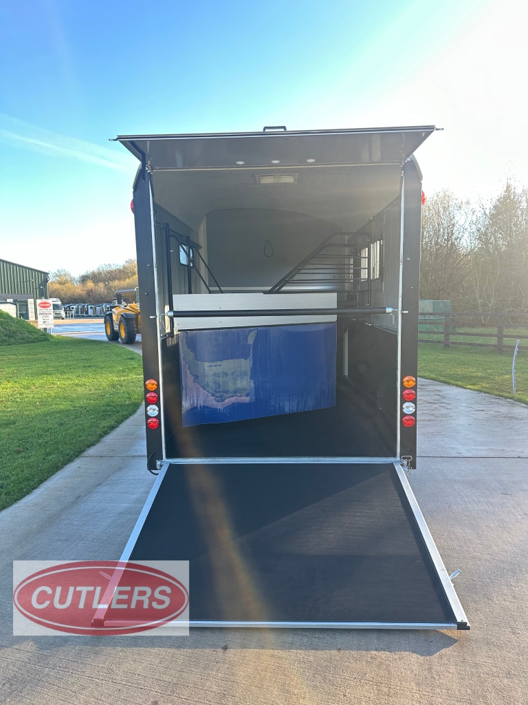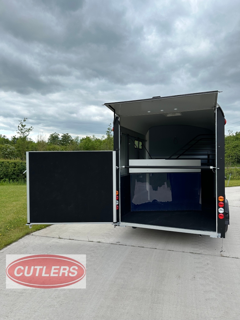 • * Brand new unused* • Famous Pullman suspension • Gross weight is 3500 kg • Unladen weight 1500 kg • Payload of 2000 kg • Built in tack room (four saddle rack & four bridle hooks) • Herringbone traveling position • Front padding as standard • Head partition included as standard • Six large sliding windows • Telescopic adjustable partitions with clear PVC Skirt • Two opening roof vents • Opening side flaps – Please see pictures • Aluminium floor • Aluminium rear ramp / barn door system • Aluminium side walls • Large full height grooms door • 13 pin electrics adapters can be provided) • Spare wheel included as standard • Strong V Drawbar • Roof and front one solid fibreglass structure • Shock proof ABS mud guards • Jockey wheel automatic lift with manoeuvring handle • Choice of colours in stock are Anthracite Grey and Black • Protected rear lights • High level brake light • Interior light • Wheel chocks • External Dimensions (L) 6090mm x (W) 2300mm x (H) 2810mm • Internal Dimensions (L) 4900mm x (W) 2070mm x (H) 2300mm • 5 Year warranty on aluminium parts • Trailers can be ordered in Black, Iron Grey, Anthracite Grey, White and Blue • Optional extras can be fitted – • Barn doors & windows in lieu of a rear ramp £675.00 Plus VAT • Top storage rack £200.00 Plus VAT • Outside full length tie bar in stainless steel £240.00 Plus VAT • Rear solid tailgate opening £350.00 Plus VAT • Full invoice supplied with sale • Viewing is welcomed but by appointment only • Px welcome great prices offered • Nationwide delivery available • Finance options are available • Cash, bank transfer or Debit card on collection • £17940.00 Inc VAT @ 20% • Call Jack at CUTLERS SALES AND HIRE LTD – Equi-Trek Derby anytime on 01543 222 957 for more information or to view. |