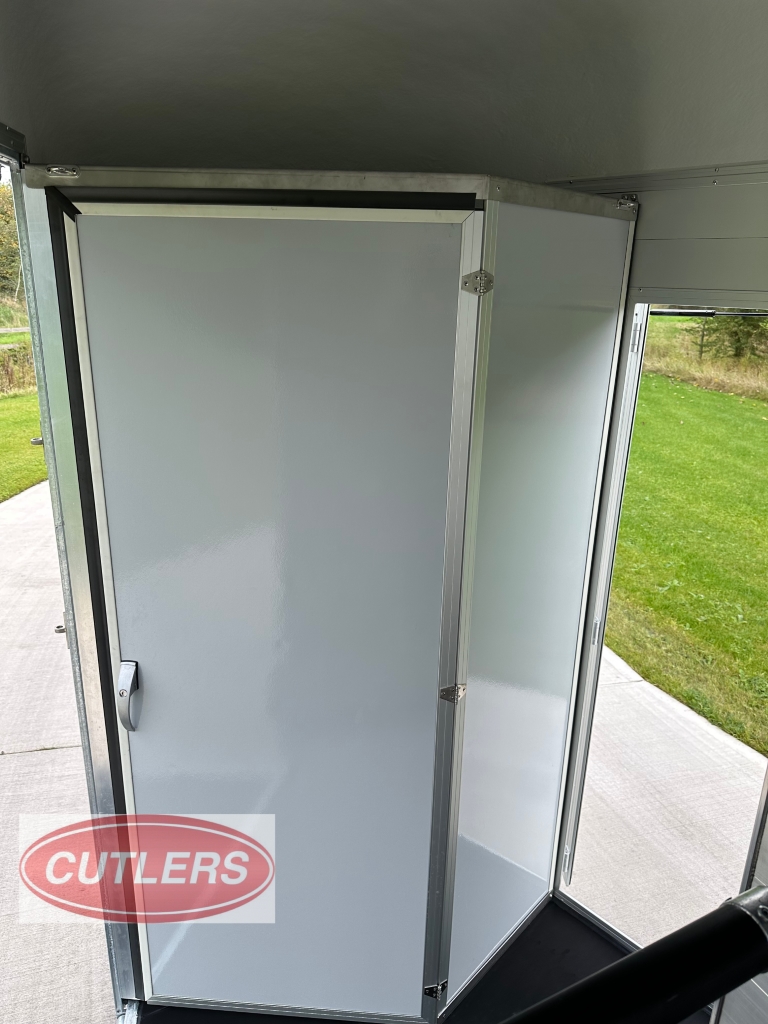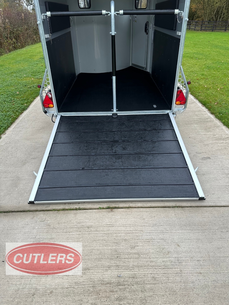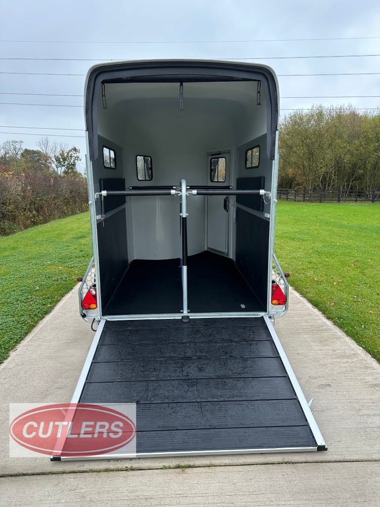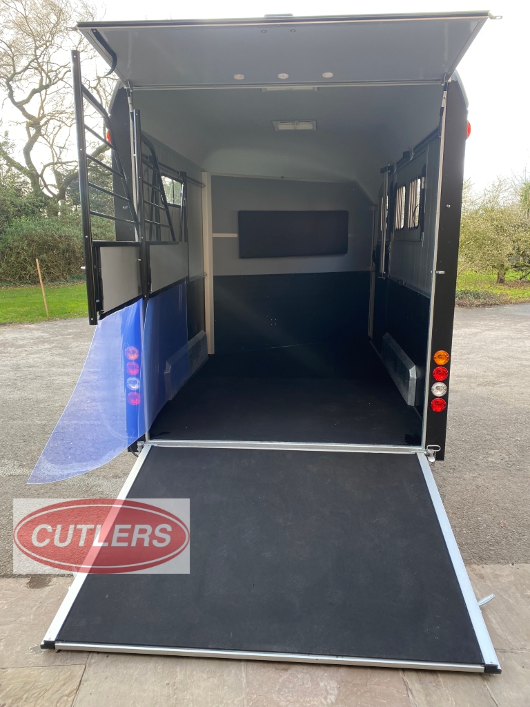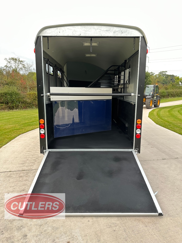 • * Brand new unused* • Famous Pullman suspension • Gross weight is 3500 kg • Unladen weight 1500 kg • Payload of 2000 kg • Built in tack room (four saddle rack & four bridle hooks) • Herringbone traveling position • Front padding as standard • Head partition included as standard • Six large sliding windows • Telescopic adjustable partitions with clear PVC Skirt • Two opening roof vents • Opening side flaps – Please see pictures • Aluminium floor • Aluminium rear ramp / barn door system • Aluminium side walls • Large full height grooms door • 13 pin electrics adapters can be provided) • Spare wheel included as standard • Strong V Drawbar • Roof and front one solid fibreglass structure • Shock proof ABS mud guards • Jockey wheel automatic lift with manoeuvring handle • Choice of colours in stock are Anthracite Grey and Black • Protected rear lights • High level brake light • Interior light • Wheel chocks • External Dimensions (L) 6090mm x (W) 2300mm x (H) 2810mm • Internal Dimensions (L) 4900mm x (W) 2070mm x (H) 2300mm • 5 Year warranty on aluminium parts • Trailers can be ordered in Black, Iron Grey, Anthracite Grey, White and Blue • Optional extras can be fitted – • Barn doors & windows in lieu of a rear ramp £675.00 Plus VAT • Top storage rack £200.00 Plus VAT • Outside full length tie bar in stainless steel £240.00 Plus VAT • Rear solid tailgate opening £350.00 Plus VAT • Full invoice supplied with sale • Viewing is welcomed but by appointment only • Px welcome great prices offered • Nationwide delivery available • Finance options are available • Cash, bank transfer or Debit card on collection • £17940.00 Inc VAT @ 20% • Call Jack at CUTLERS SALES AND HIRE LTD – Equi-Trek Derby anytime on 01543 222 957 for more information or to view. |