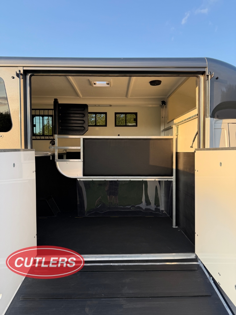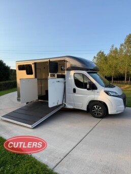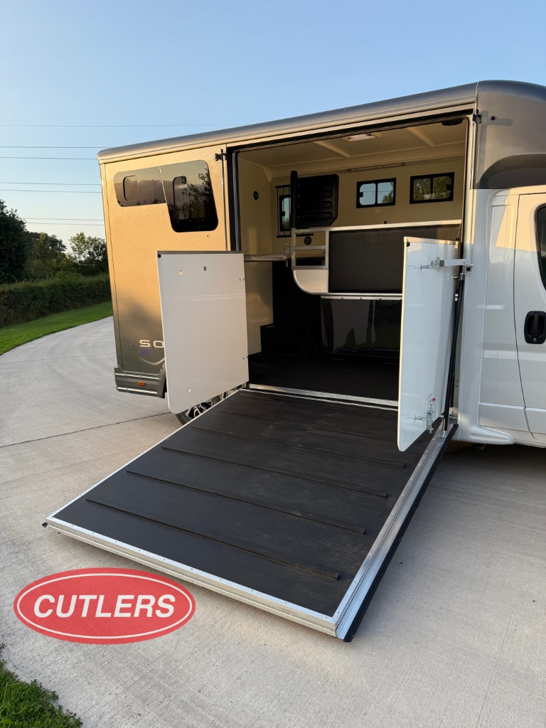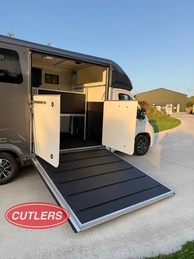 Now available at Cutlers Sales & Hire Ltd – Equi-Trek Derby, this brand new, unregistered Equi-Trek Sonic Excel 3.5 Ton horsebox offers premium comfort, safety, and performance. Built on a Peugeot chassis with a powerful 2.2L diesel engine producing 140BHP, this horsebox is ideal for transporting horses up to 18.0hh with ease.